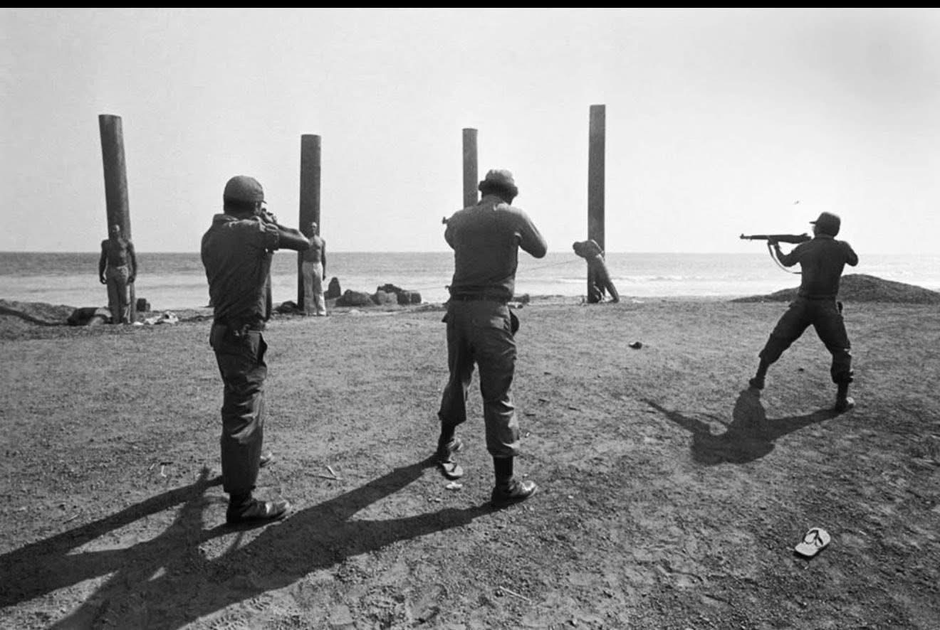 Under the authority of the People’s Redemption Council, led by Master Sergeant Samuel K. Doe, thirteen senior officials of the Tolbert administration were taken to the beach in Monrovia—now PHP Park—and executed by firing squad in full public view.